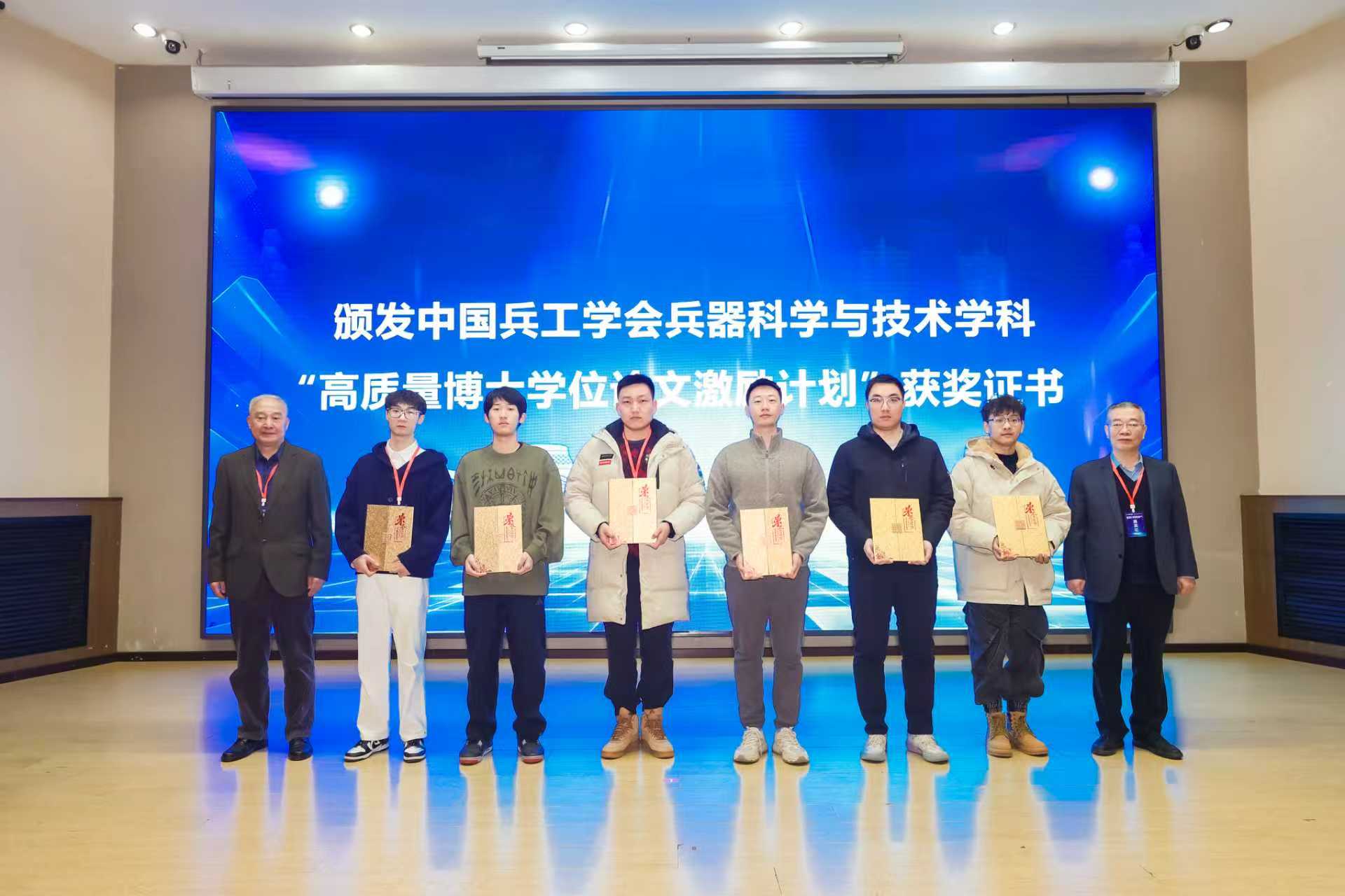 王晓锋、安玉德为中国兵工学会兵器科学与技术学科“高质量博士学位论文激励计划”入选博士代表颁发证书。